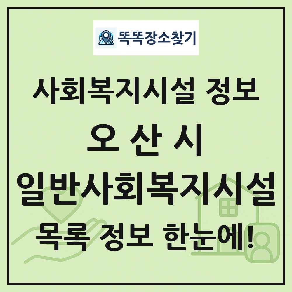 2025 경기도 오산시 일반사회복지시설 세부 목록, 통계, 전화번호, 위치 등 최신 세부정보를 확인할 수 있습니다.